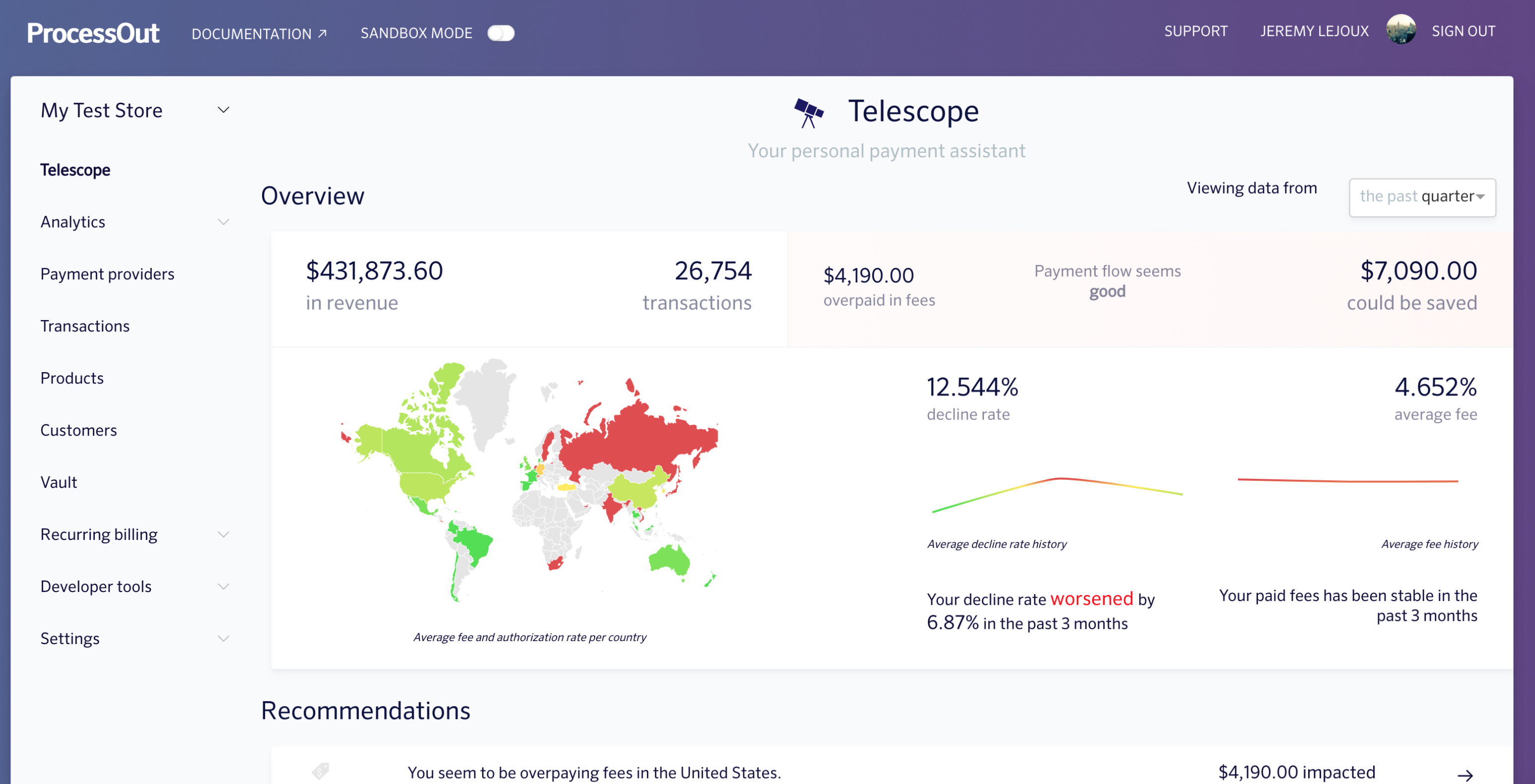Benchmark your payments across the entire ProcessOut network of customers.